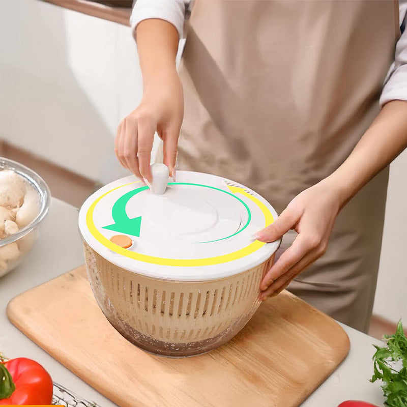 GROTE CAPACITEIT VAN 5,3 KWART - Met een royale capaciteit van 5,3 kw is onze slacentrifuge perfect voor het maken van salades voor 4-5 personen. Tegelijkertijd kan de transparante plastic kom gebruikt worden als grote serveerkom of mengkom. Gebruik de grote mand apart als groot vergiet.