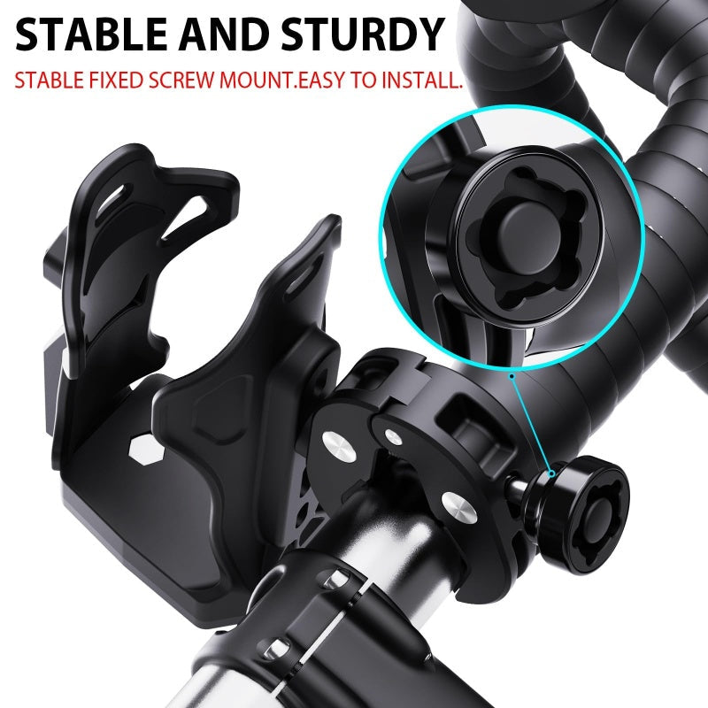 STEVIG EN DUURZAAM ONTWERP – Gemaakt van zeer sterke materialen en een telescopische stang van roestvrij staal, gecombineerd met een stevige klembeugel. Bestand tegen schokken en trillingen, zodat uw drankje stabiel blijft staan en niet morst, zelfs tijdens hobbelige ritten.