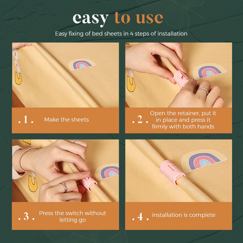 Deze clips houden het laken dag en nacht op zijn plaats, zodat u 's ochtends niet meer hoeft te rommelen met het laken. Perfect voor luie en drukbezette mensen, en het bespaart veel tijd!
