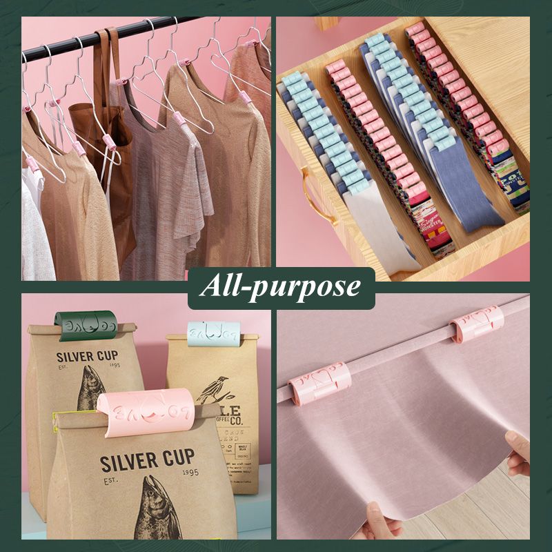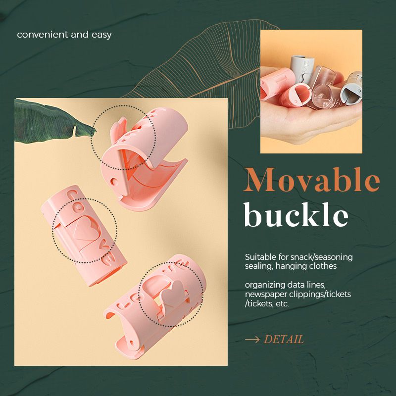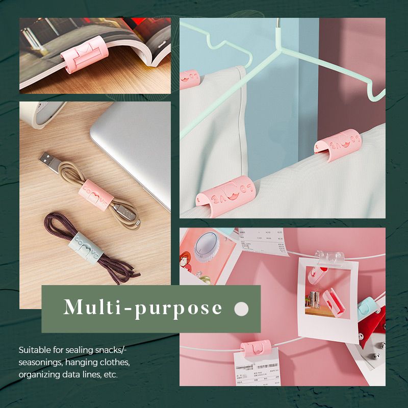 Veelzijdig: snacks/specerijen afdekken, kleding ophangen, kabels ordenen, foto's/rekeningen/tickets opbergen, enz. Geschikt om te knippen.
