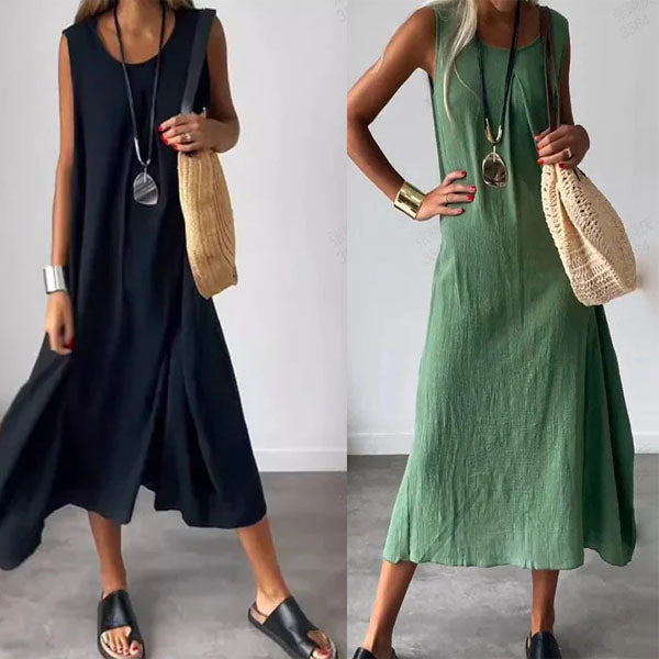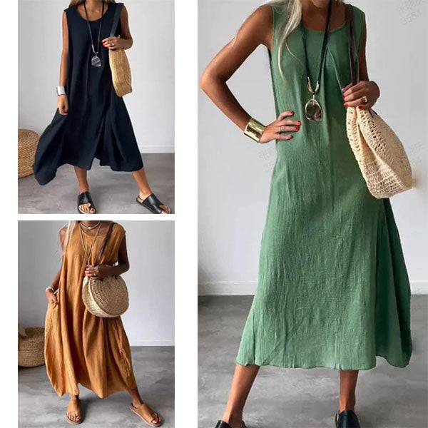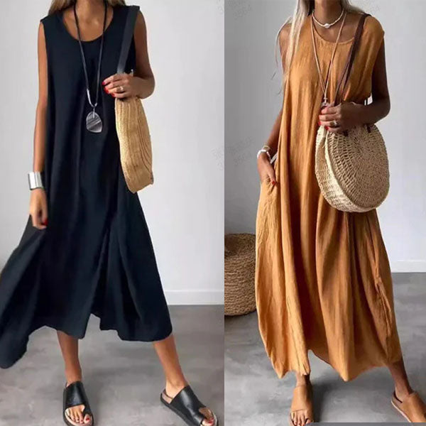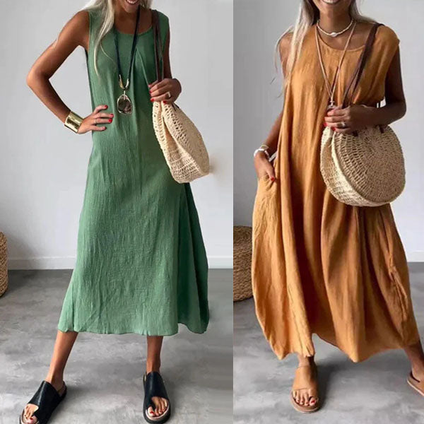1* Casual katoenen canvas mouwloze jurk met zakken