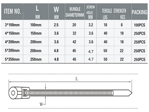 Pakket: 100 stuks * schroefgat kabelbinders