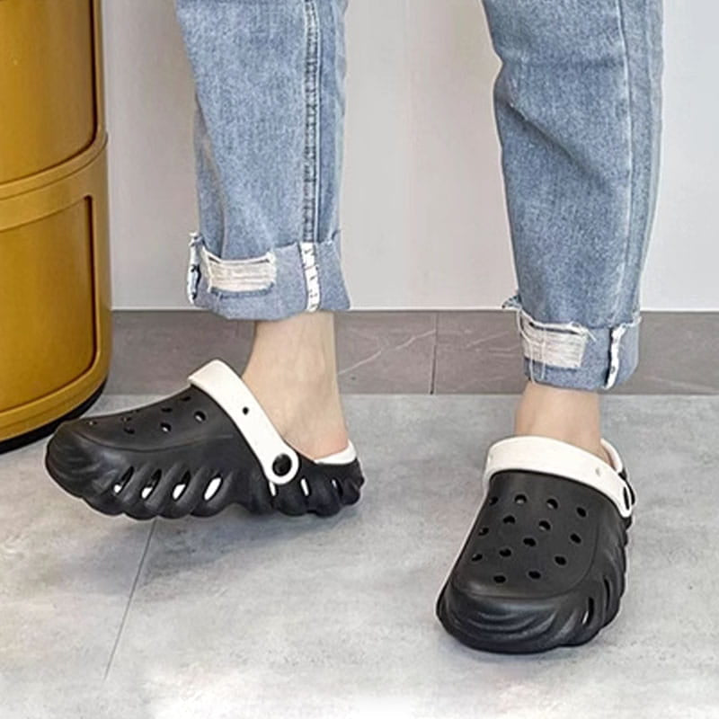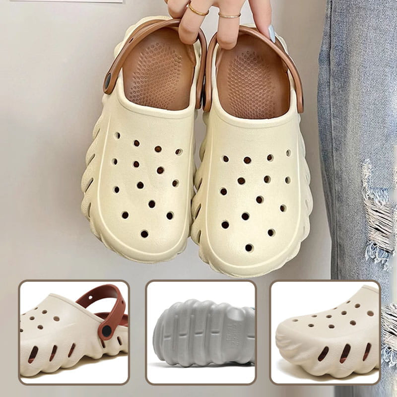 ADEMEND EN SNELDROGEND: Deze schoenen zijn uitgerust met verschillende ventilatiegaten, zodat je voeten koel blijven. Ze bevorderen de luchtcirculatie en vochtverdamping en voorkomen ongemak en geurtjes, waardoor ze perfect zijn voor buitenactiviteiten en uitstapjes naar het strand.