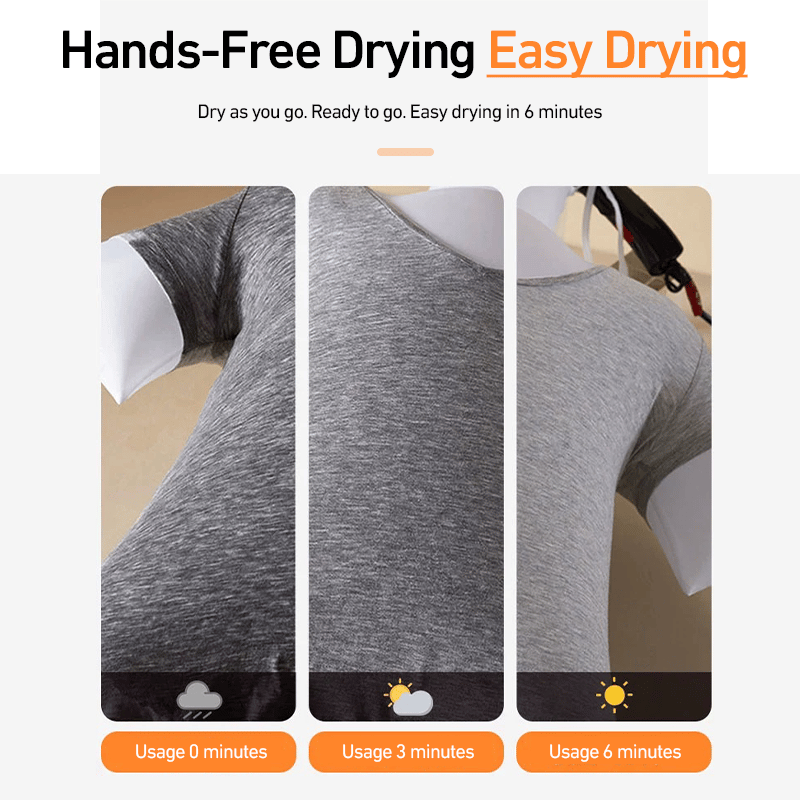 Sneldrogend - Met onze geavanceerde droogtechnologie kunt u uw kleding in slechts een paar minuten drogen, zodat u altijd klaar bent om te gaan. Of het nu gaat om een plotselinge regenbui of een gemorst drankje, met onze droogset ziet u er in korte tijd weer fris en droog uit.
