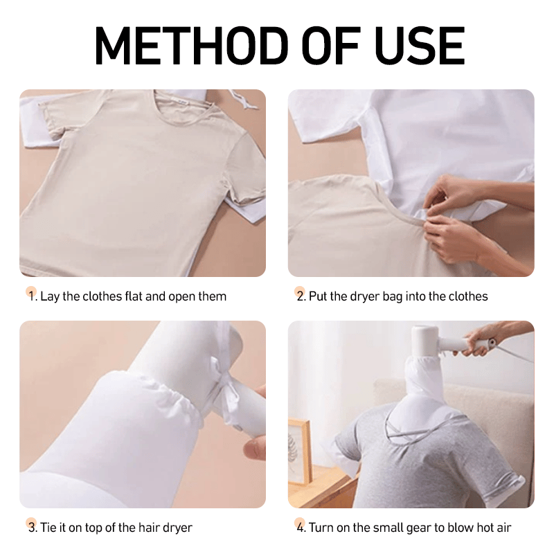 Voor haardrogers - Onze droogtassen zijn zo ontworpen dat ze op de meeste haardrogers passen, waardoor ze gemakkelijk te bevestigen en te gebruiken zijn. Bovendien kun je de zakken stevig vastmaken met de meegeleverde riemen, zodat je je handen vrij hebt voor andere taken terwijl je kleding droogt.
