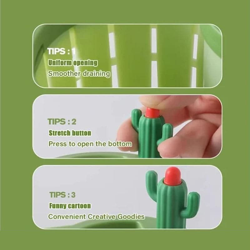 Druk gewoon lichtjes op de kop van de cactus en al het keukenafval in het filter verdwijnt! Gedaan met het vervelende schoonmaken met de hand.