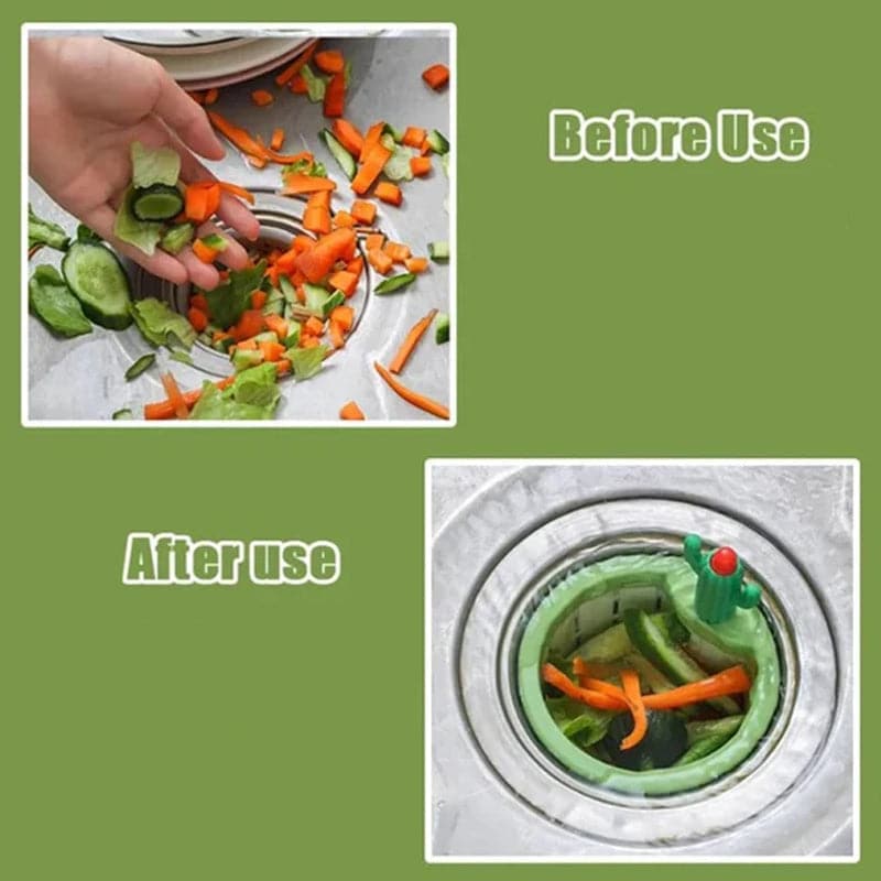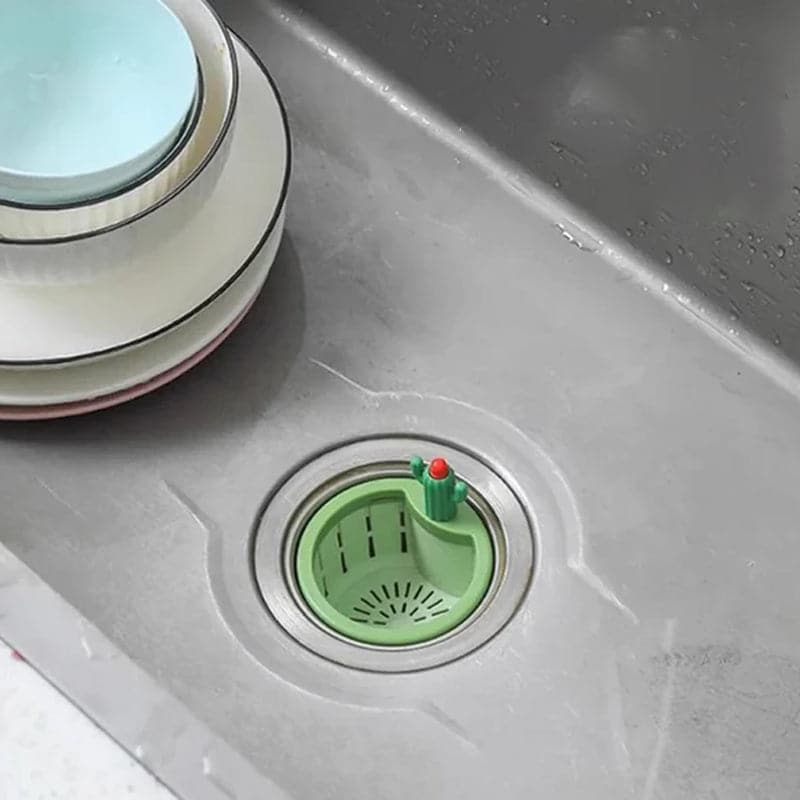 Houd je gootsteen moeiteloos schoon met het Cactus gootsteenzeefje - druk gewoon op het zeefje om het vuil in stijl weg te werpen.!