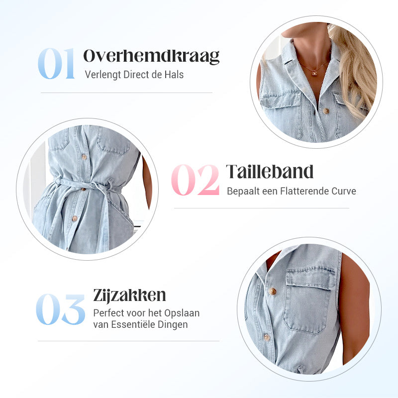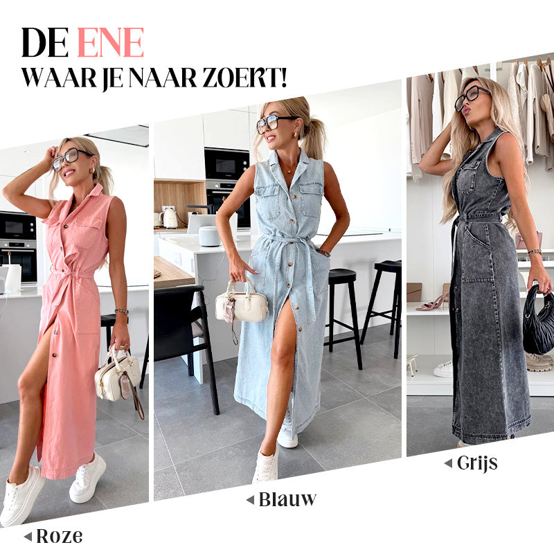 🔥 2025 NIEUWE VERKOOP -50% KORTING💥 Dames Denim Midi Jurk met Tailleband