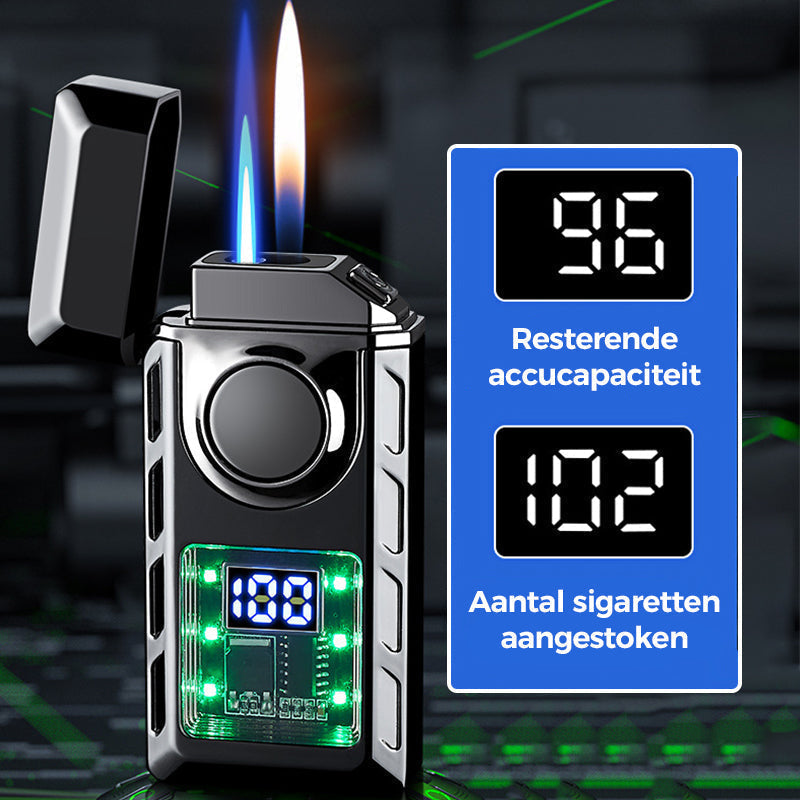 SLIMME DISPLAY: Bewaak uw resterende batterijniveau en houd het aantal ontstekingen bij, zodat u altijd op de hoogte bent van de status van uw aansteker.