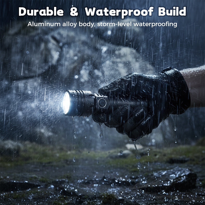 ROBUUSTE CONSTRUCTIE VAN ALUMINIUMLEGERING – Deze zaklamp is gemaakt van een zeer sterke aluminiumlegering, waardoor hij uitzonderlijk duurzaam is en uitstekend bestand tegen schokken en corrosie. Het waterdichte ontwerp garandeert een betrouwbare werking, zelfs in stromende regen en onder zware omstandigheden.