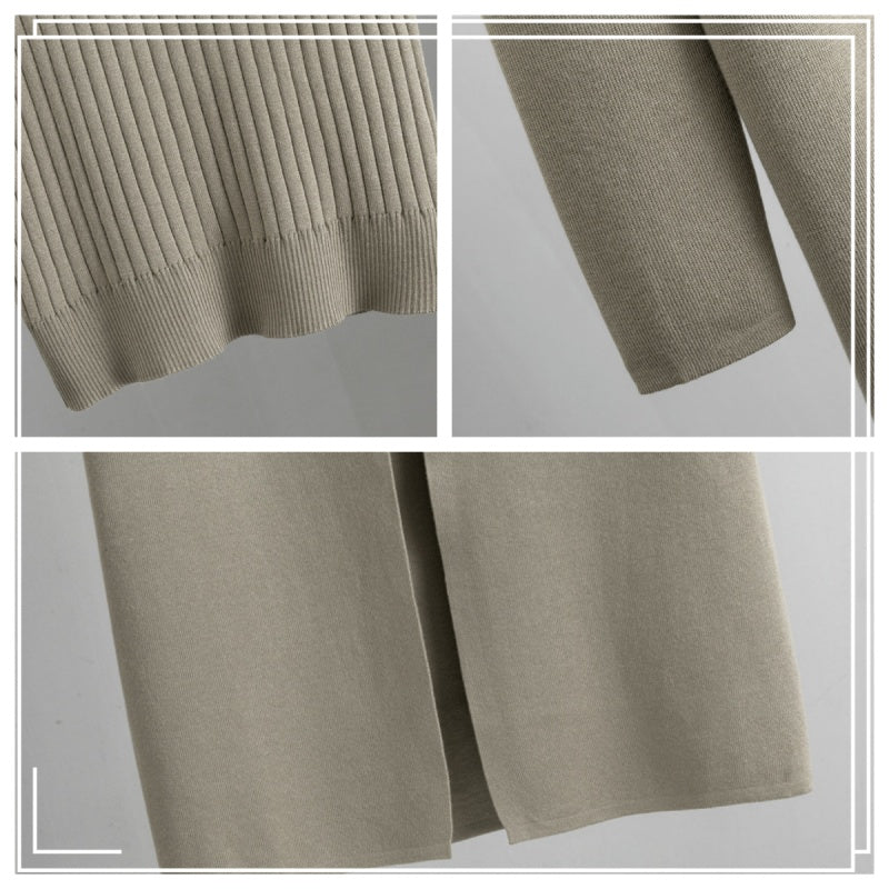 GEBREID STREEPONTWERP: Het mouwloze sweater vest heeft een gebreid verticale streep patroon, wat een vleugje verfijning toevoegt en de eentonigheid van effen kleuren doorbreekt. Dit ontwerpdetail verhoogt de algehele verfijning van de set.