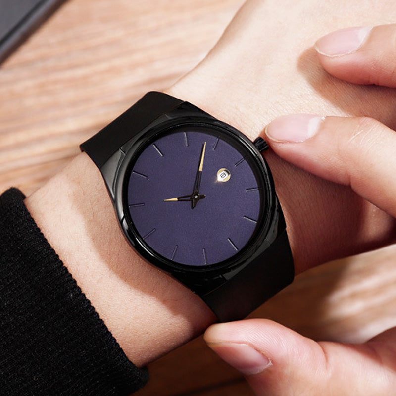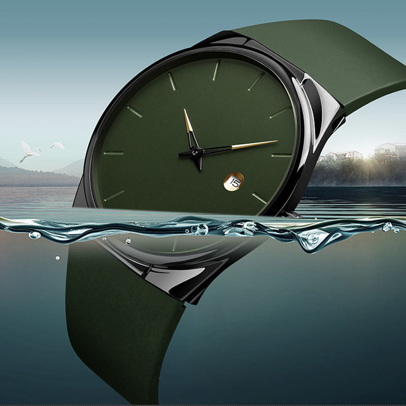 Modern minimalistisch ontwerp: een elegante wijzerplaat van 40 mm met een smal profiel van 7 mm past bij alles, van zakelijke kleding tot weekendkleding. Kies uit vijf geraffineerde kleuren (rood, blauw, zwart, groen, kaki) die passen bij je persoonlijke stijl.
