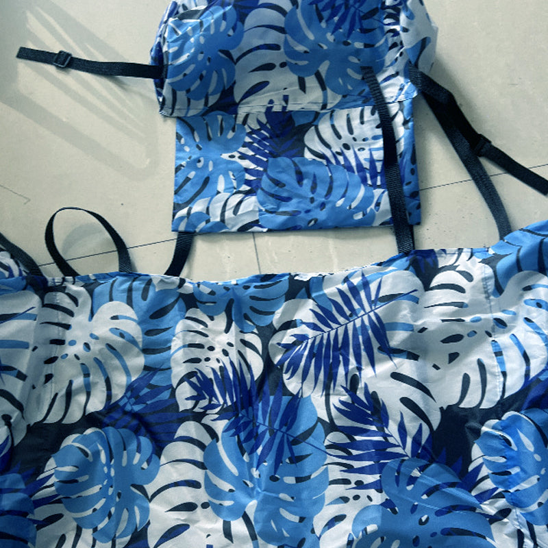 Ontwerp met tropische schoepen + dubbele pompoptie- Drijf in stijl met levendige blauwe of groene bladprints. Kies een handpomp voor snel oppompen of een voetpomp voor handsfree gebruik. De esthetiek is klaar voor het strand en praktisch - tover je zwembad, meer of achtertuin in een paar minuten om in een tropische oase.