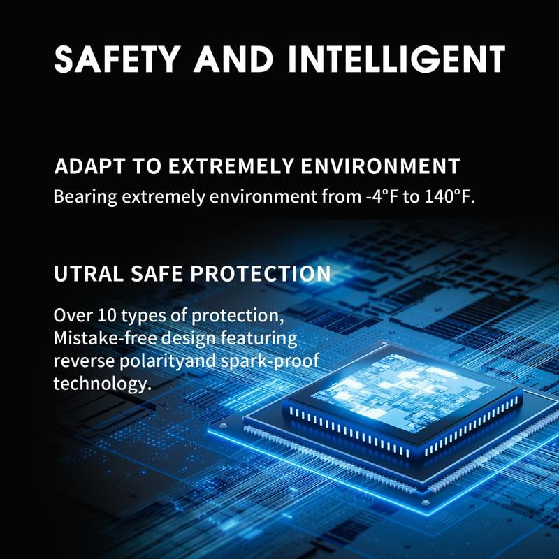 【10 Intelligente, veilige bescherming en stabiele werking】: Onze auto-accu starthulp heeft 10 beveiligingssystemen (omgekeerde polariteit, omgekeerde lading, te diep ontladen, omgekeerde aansluiting, kortsluiting, overbelasting, overstroom, oververhitting, vonkbestendigheid). De High Power jumpstarter voor de autoaccu zorgt voor uw veiligheid tijdens gebruik en kan werken bij temperaturen tussen -30°C en 60°C, zelfs bij extreme weersomstandigheden.