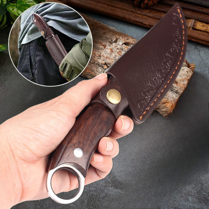 DRAAGBARE SCHEDE: Dit keukenmes wordt geleverd met een goed gemaakte beschermhoes van imitatieleer. Voor gebruik buitenshuis kun je het aan je riem dragen voor gemakkelijke toegang. Het is absoluut een praktische hulp, zowel binnen als buiten.