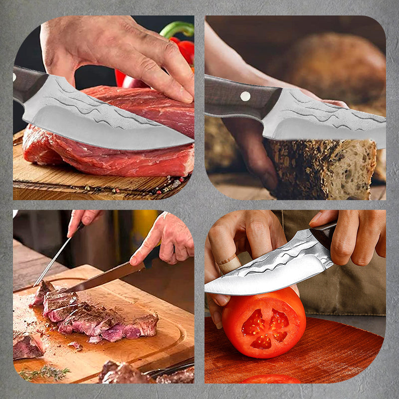 SCHERP EN HARD: Het dikke en stevige lemmet is gemaakt van koolstofstaal met een v-vormige handopeningsmethode, wat het zeer hard maakt en zorgt voor een scherp lemmet. Ideaal voor het snijden van fruit en vlees of het eenvoudig uitbenen.