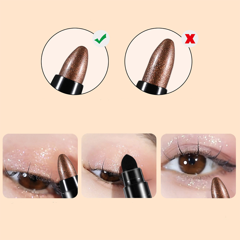 2-in-1 ONTWERP: De ene kant is een oogschaduwpotlood dat glijdt als zijde en glans geeft aan oogleden, wangen of sleutelbeenderen. De andere kant heeft een zachte spons-perfect voor het precies aanbrengen van glans in kleine gebieden zoals de binnenste hoeken van de ogen of de brug van de neus.