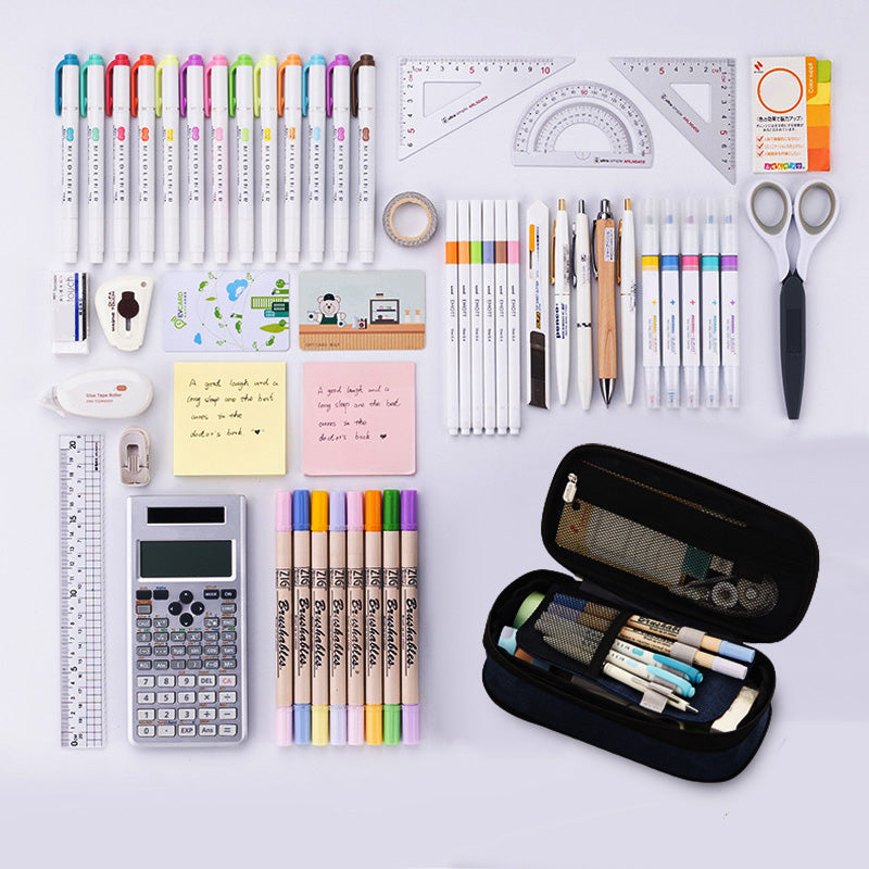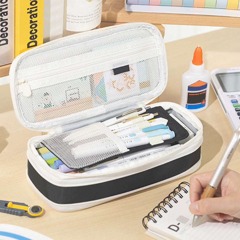 Uitbreidbare grote capaciteit - Het potloodzak met grote capaciteit heeft de mogelijkheid om uit te breiden voor meer pennen en andere briefpapieritems. Het kan maximaal 100+ pennen of potloden opslaan, waardoor het perfect is voor studenten die naast pennen, zoals rubber, stickers, linialen, enz.