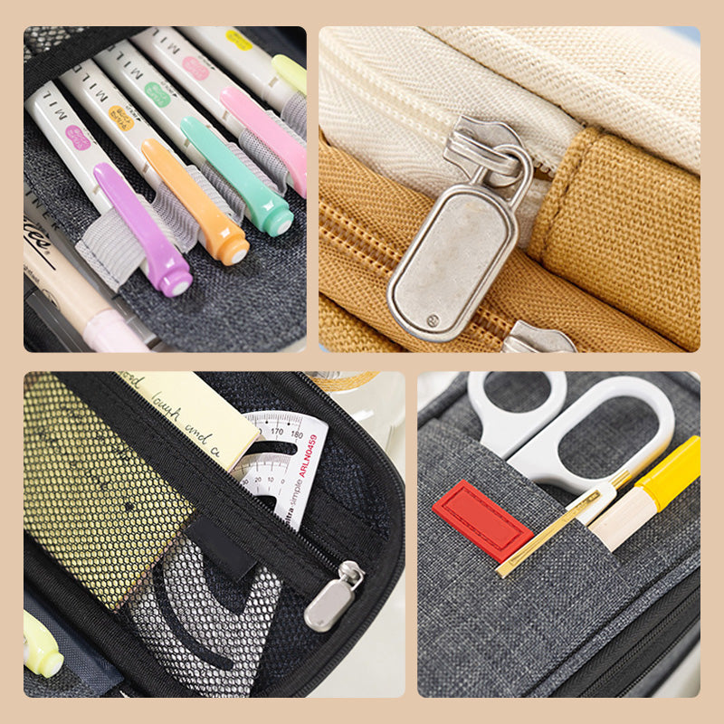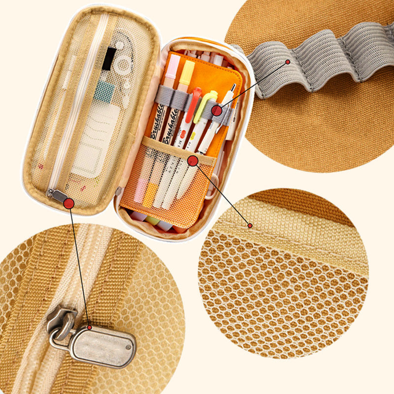 Hoge kwaliteit - Het potloodzak met grote capaciteit is gemaakt van duurzame canvasweefsel en hoogwaardige ritsen met netjes gerangschikte ritssluiting. Het is zeer bestand tegen slijtage, duurzaam en wasbaar.