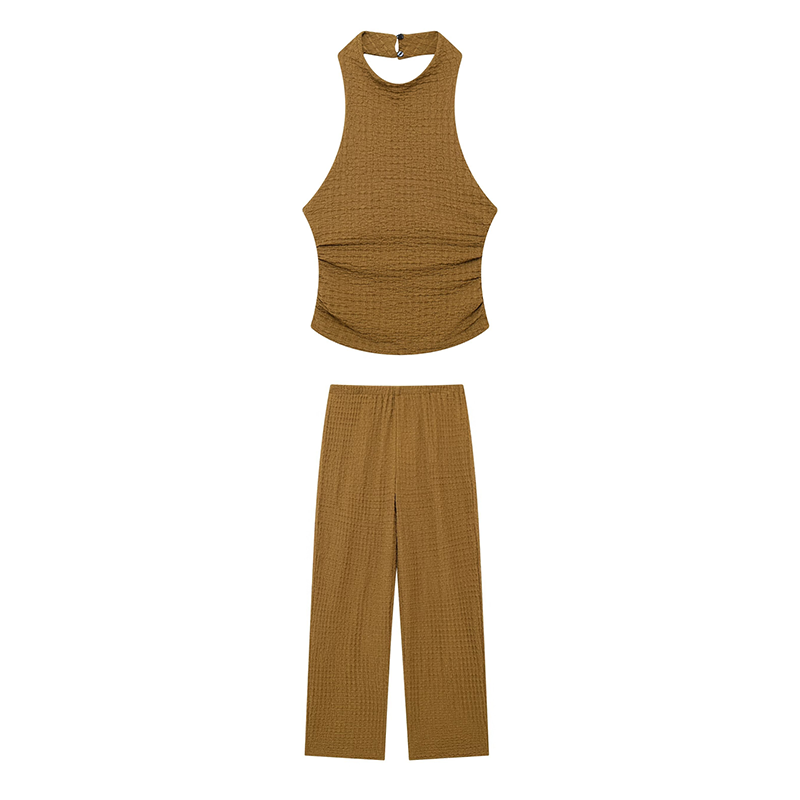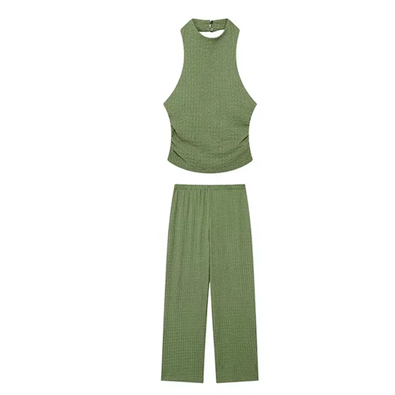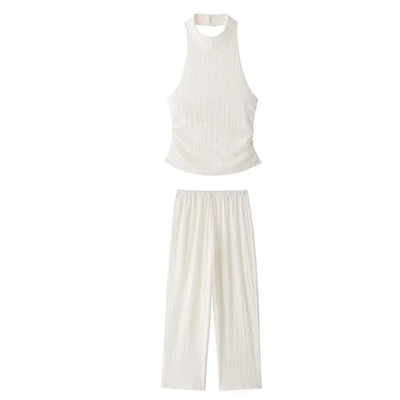 1* Sexy mouwloze top zonder rug en elastische broek met wijde pijpen voor vrouwen in 2 stukken