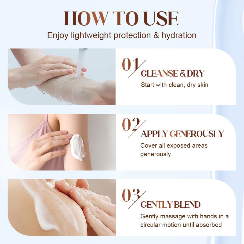 MAXIMALE UV-BESCHERMING - Met een SPF50+ PA++++-classificatie biedt het krachtige breedspectrumbescherming tegen zowel UVA- als UVB-stralen, waardoor zonnebrand en tekenen van vroegtijdige veroudering effectief worden voorkomen, zodat u zorgeloos van buitenactiviteiten kunt genieten.