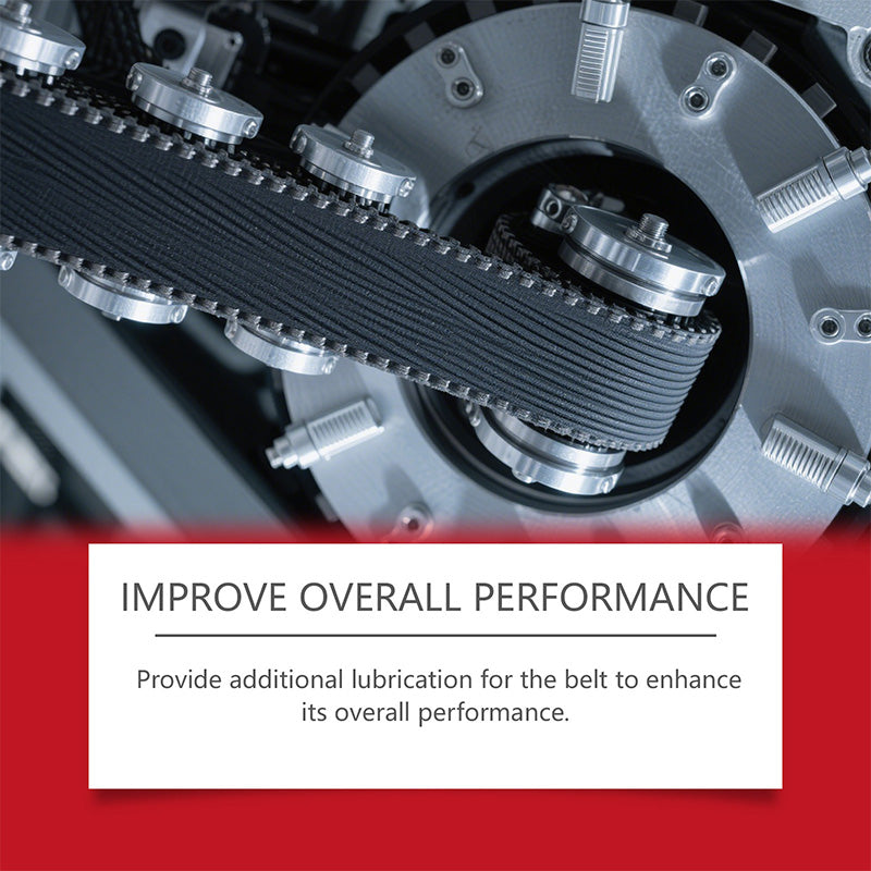 VERLENGT DE LEVENSDUUR VAN DE RIEM - De hoogwaardige smeersamenstelling dringt diep door in riemvezels om wrijving te verminderen en vroegtijdige slijtage te voorkomen. Helpt riemen langer mee te gaan terwijl optimale spanning en prestaties behouden blijven.