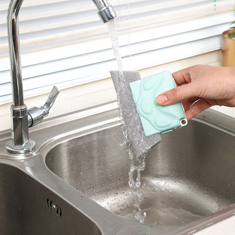 STIJF & STABEL: Het schuursponsje is stevig aan het handvat bevestigd voor een stabiele en betrouwbare schoonmaakervaring. Dit ontwerp zorgt ervoor dat de borstelharen hun positie behouden en effectief de moeilijk schoon te maken plekken aanpakken zonder te wiebelen of los te komen.