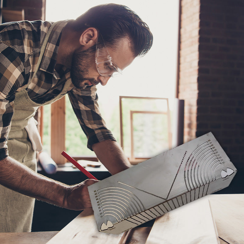 PRECIES MEETKUNDE: Deze markeer liniaal heeft duidelijke, nauwkeurige markeringen met een 90° hoekontwerp, wat zorgt voor een perfecte pasvorm voor vierkante objecten. De uitsparingslijnen maken het gemakkelijk om boog- of rechte hoeken te tekenen, waardoor het een essentieel hulpmiddel is voor precisiewerk.