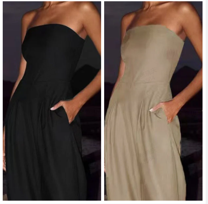 FLATTEREND STRAPLESS DESIGN - Deze jumpsuit heeft een chique strapless halslijn die de schouders en het sleutelbeen mooi benadrukt, perfect voor zomerfeestjes, vakanties of date nights.