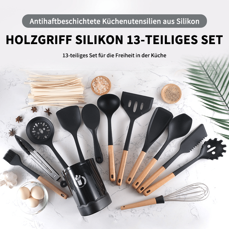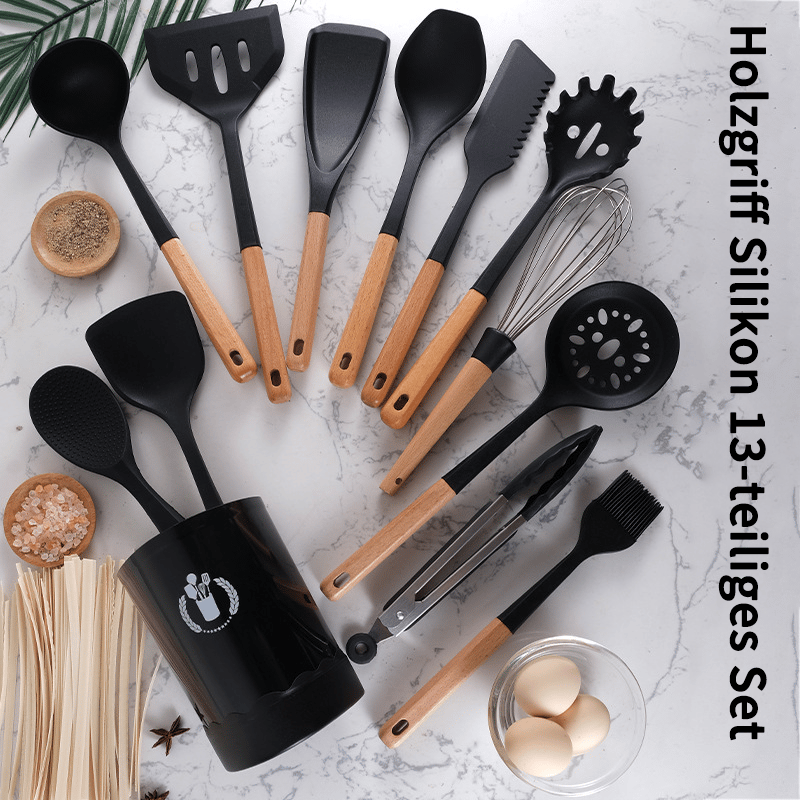 Mooi en ergonomisch, zorgvuldig gevormd om comfortabel in de hand te liggen, zodat je moeiteloos stoofpotjes kunt roeren, soepen kunt afschuimen en steaks kunt draaien. Elk stuk gereedschap is gemaakt van ultra-duurzaam matzwart silicone dat hittebestendig is en veilig gebruikt kan worden op alle kookoppervlakken, inclusief antiaanbaklagen. De elegante siliconen worden aangevuld door chique acaciahouten handgrepen, elk met een uniek houtnerfpatroon. Hun praktische ophanglussen bieden ook gemakkelijk opbergruimte.