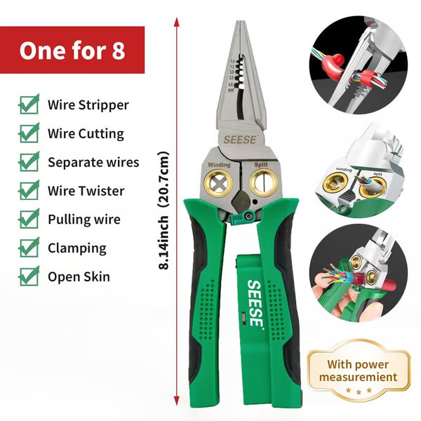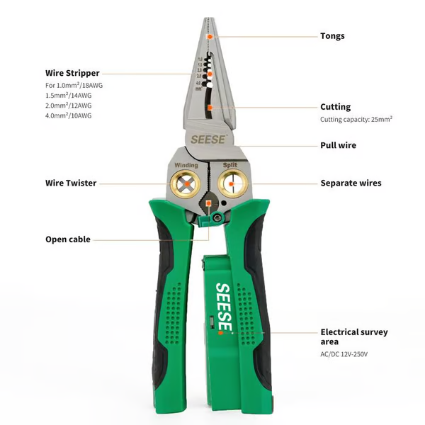 8-in-1 draadstripper, twister voor het knippen en trekken van draden, kabelschaar, spanningstester, tang