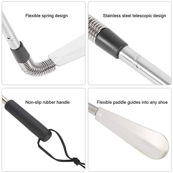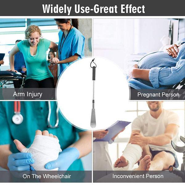 - Te gebruiken terwijl je staat of zit zonder te bukken, flexibele veer maakt het aan- en uittrekken van je schoenen en laarzen gemakkelijk vanuit elke hoek, perfect voor ouderen, zwangeren of gehandicapten en mensen met rugpijn, heuppijn, artritis, ischias en andere mobiliteitsproblemen.