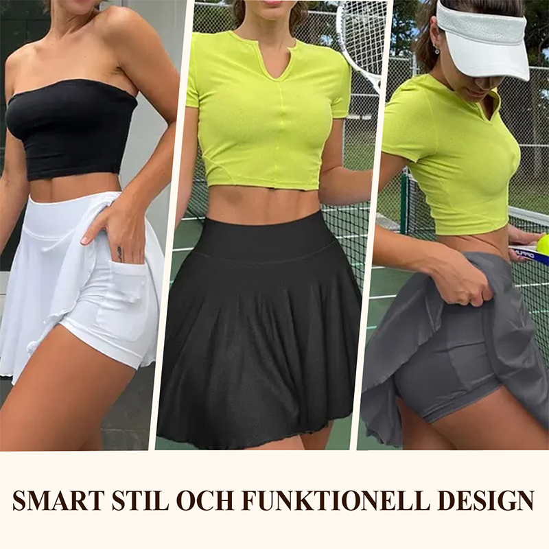 SMART STIJL EN FUNCTIONEEL DESIGN - Het hoog getailleerde silhouet modelleert en stroomlijnt je figuur, terwijl de broek-rok laag zorgt voor bescheidenheid tijdens dynamische bewegingen. Verborgen zijzakken bieden discrete opbergruimte voor sleutels, telefoon of energiegels.