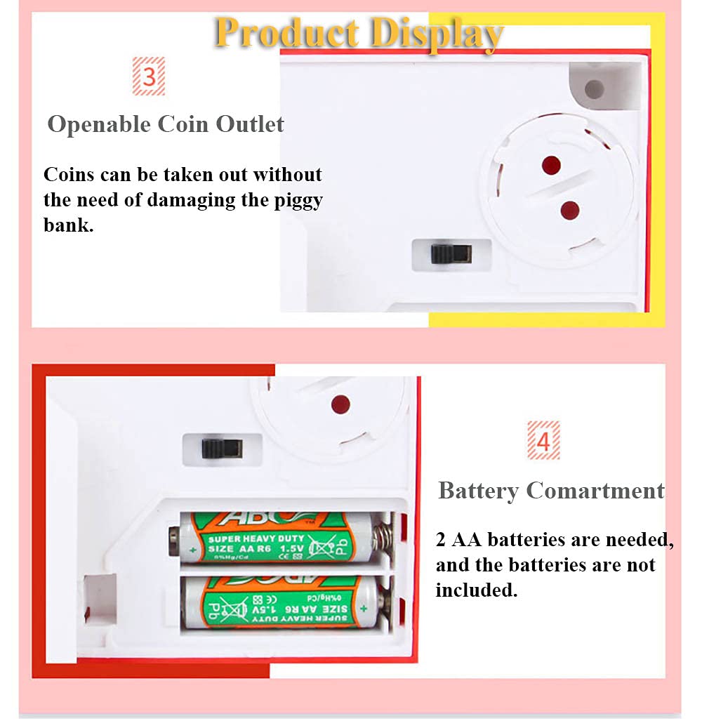 【Kwaliteit Materiaal】Stealing coin box spaarpot maakt gebruik van veilige en niet-giftige ABS plastic, alle materialen zijn eco-vriendelijk en niet giftig, zodat ouders kunnen er zeker van zijn wanneer kinderen spelen met het. Deze spaarpot is een leuke manier om kinderen te leren over geld sparen en kinderen kunnen er meer over leren door de stimulatie.