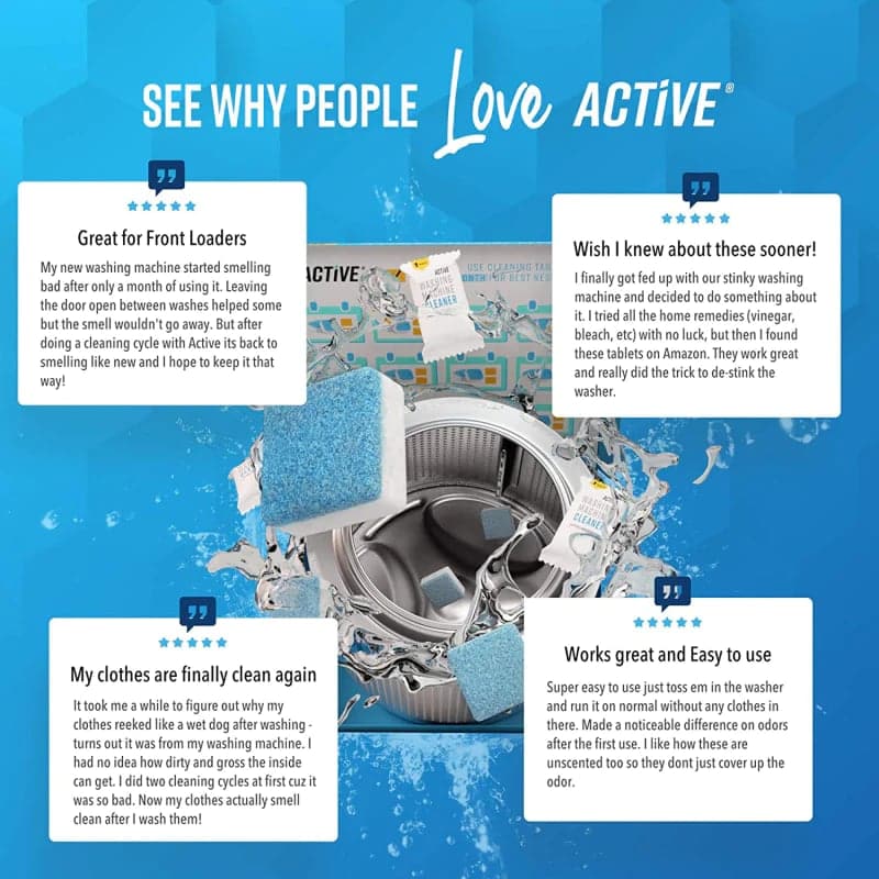 Maak je geen zorgen! Begin een nieuw tijdperk van gezonde was met onze Freshtab™. Het is tijd om volledig afscheid te nemen van vuil en geur uit uw wasmachine.