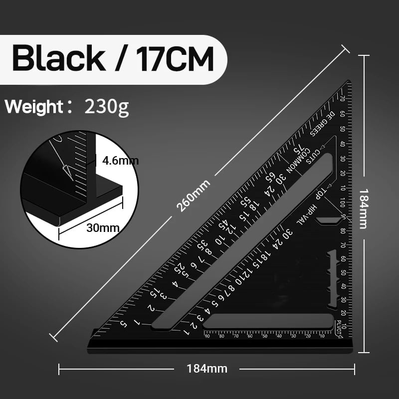 Nauwkeurige metingen: het driehoekige ontwerp biedt nauwkeurige hoek- en afstandsmetingen, zodat je altijd op het juiste punt snijdt. De schaal van de driehoekige liniaal is beter zichtbaar voor nauwkeurigere metingen.