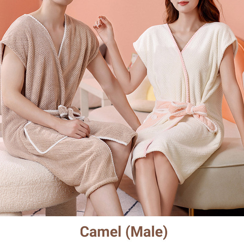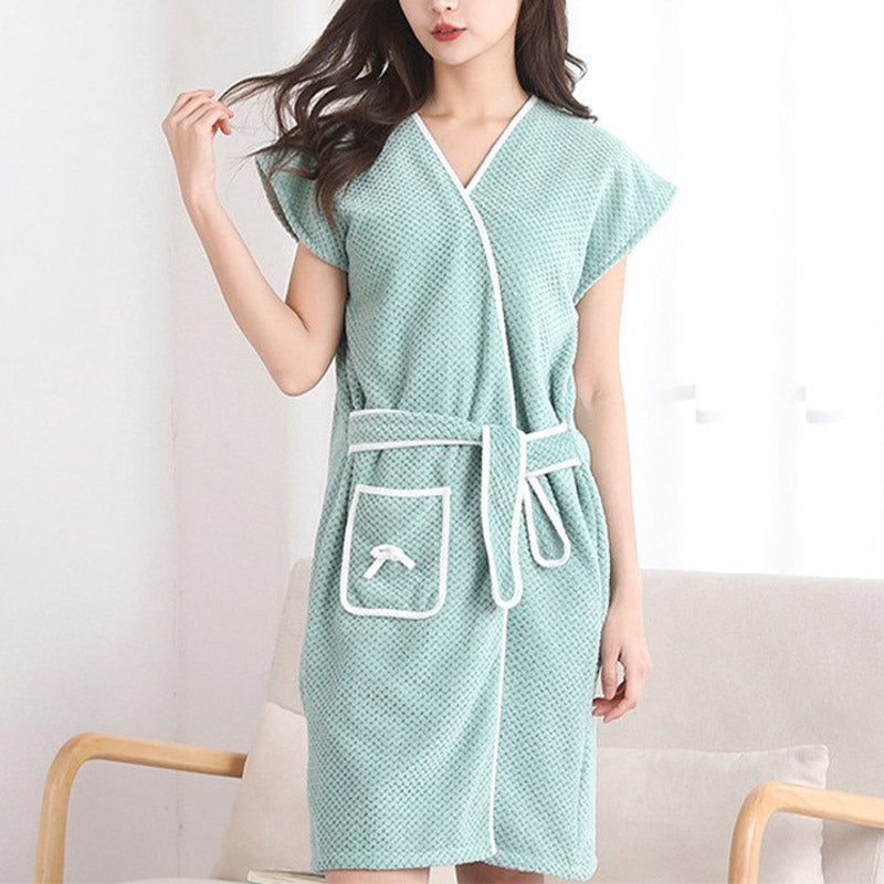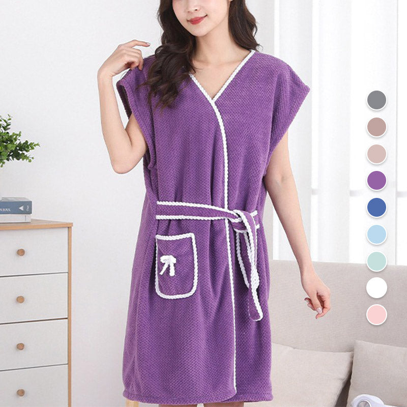 UITSTEKEND ABSORBEREND VERMOGEN: Deze wikkelbadjas is gemaakt van hoogwaardige materialen en is ontworpen om ultra-absorberend te zijn, zodat u na elk bad of elke douche droog en comfortabel blijft. De zachte imitatiefluwelen stof voert vocht snel af van uw huid, waardoor hij perfect is om in te ontspannen na het zwemmen of baden.