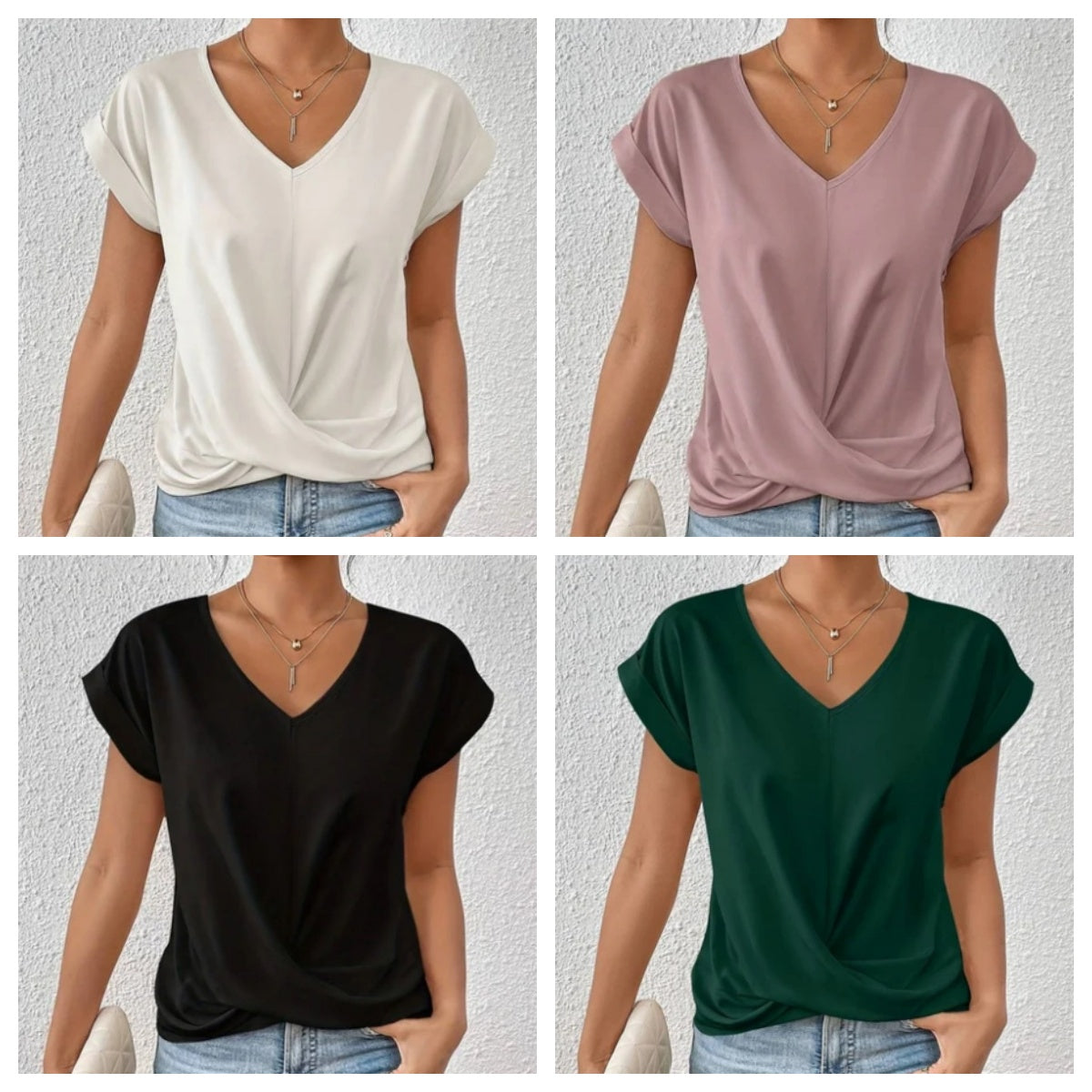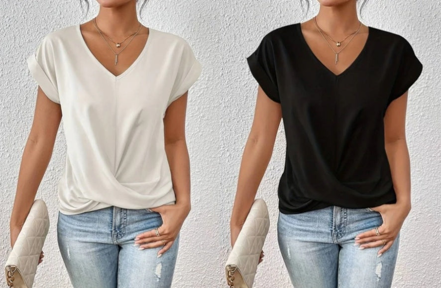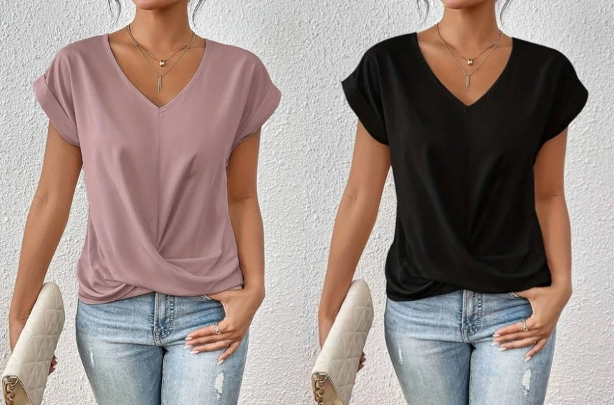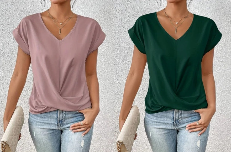 🎉Speciale prijs🎉👚Casual t-shirt met korte mouwen en elegante v-hals plooien