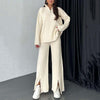 COMFORT MEETS STIJL: Deze tweedelige set heeft een loose-fit gebreide trui met een halve rits aan de voorkant, perfect om in laagjes te dragen of om op zichzelf te dragen. Het knusse, ontspannen ontwerp maakt het ideaal voor casual uitjes of thuis loungen terwijl je er toch moeiteloos chique uitziet.