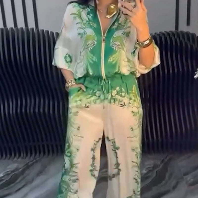 CHIQUE BLOEMENPATROON: Deze twee-delige set heeft delicate bloemenprints, die een elegante flair toevoegen en moeiteloos je verfijnde stijl verbeteren voor zowel casual als formele gelegenheden.