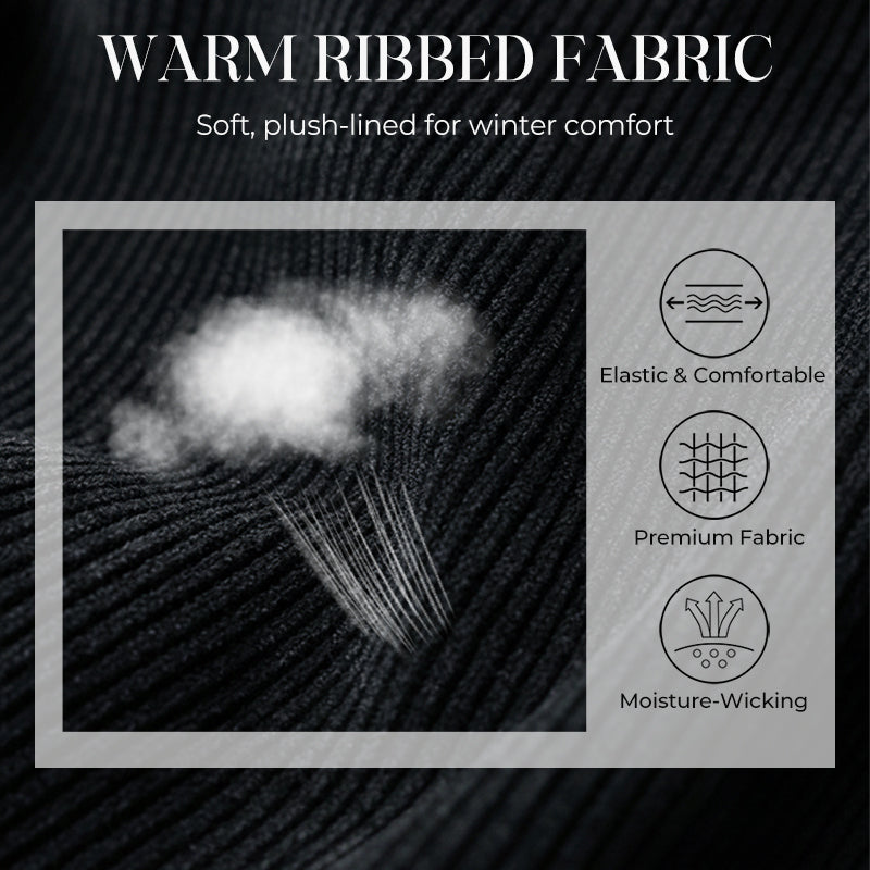 PLUSH-LINED RIBBED FABRIC - Experience exceptional warmth and softness with the plush-lined interior and classic ribbed exterior. This design provides excellent insulation against the cold while remaining lightweight and comfortable for all-day wear during colder seasons.