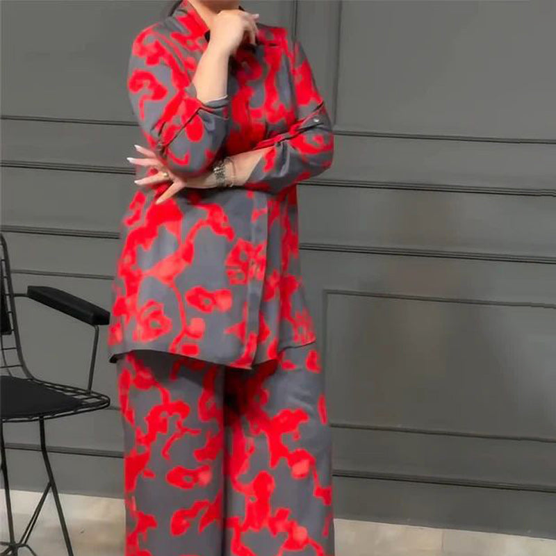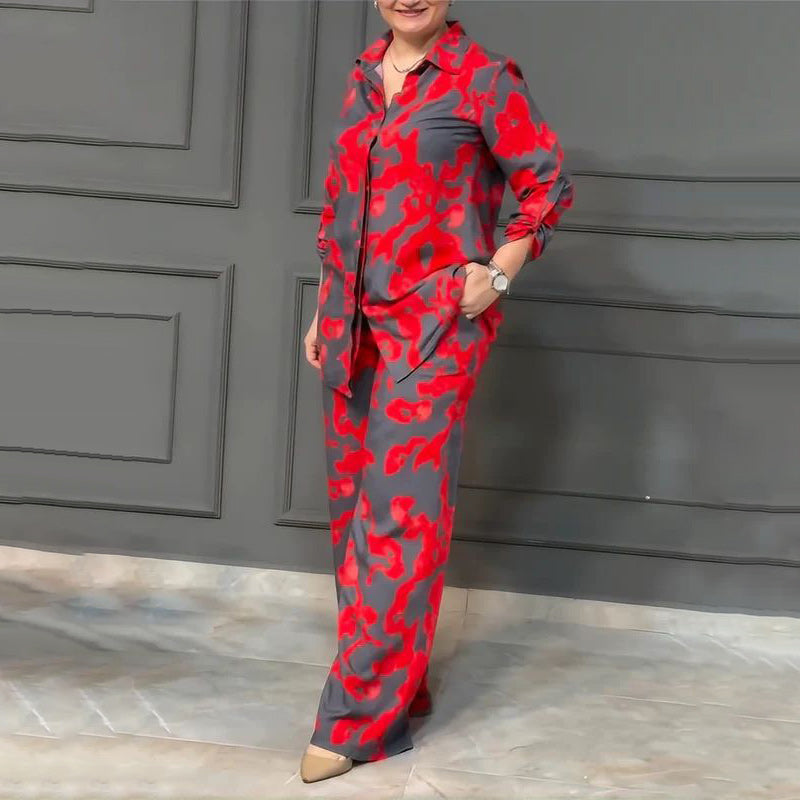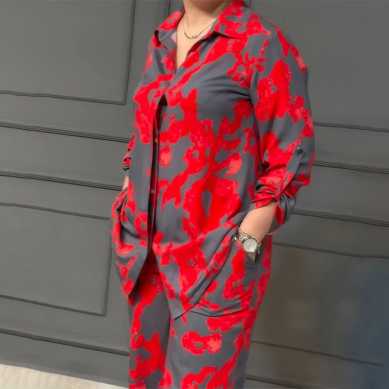 Dames Gedrukt 2-delig Overhemd & Broek met Knoopsluiting