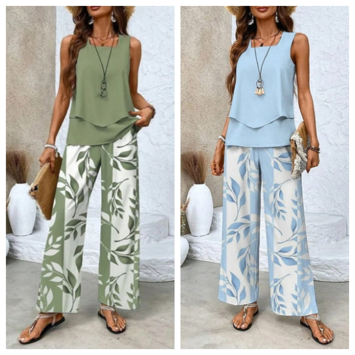 🌸Speciale prijs🌸 Dames Trendy Print 2-delige Outfits Mouwloze Top & Broek