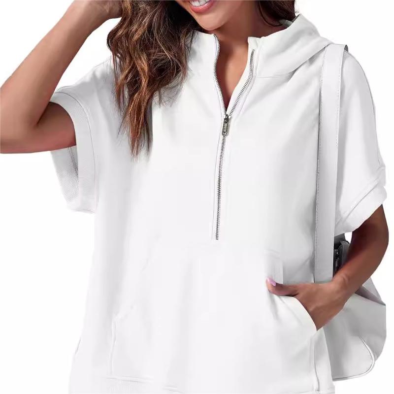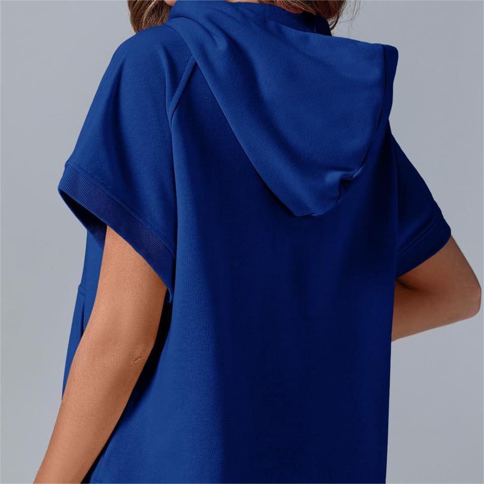 2025 Oversized casual pullover-tops met korte rits en korte mouwen en zakken