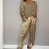 Pakket Inbegrepen: 1* Dames Ronde Hals Top en Broek 2-Delige Set